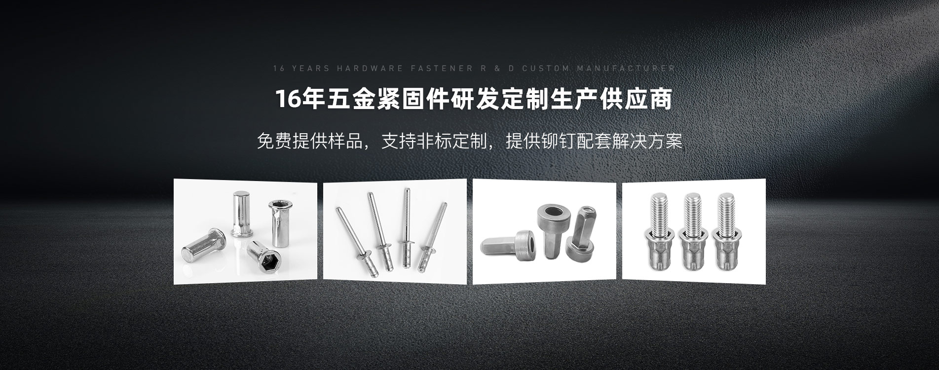 專業(ye)針對市(shi)場(chang)進行開發生產和銷售各種碳鋼、鋁、銅、不銹鋼等材質的(de)鉚接件(jian)、標準件(jian)以及各種非標異型緊固(gu)件(jian)