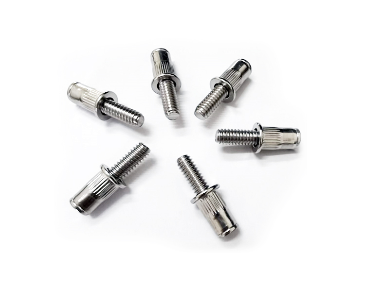 產品特點:鉚螺柱在連接工件的同時還可以起到支撐作用,特別適用于形狀比較隱蔽的注塑件。產品頭部和鉚螺母鉚體上面有條紋與其工件鉚接可以增加摩擦系數從而提高了鉚螺母抗扭性能