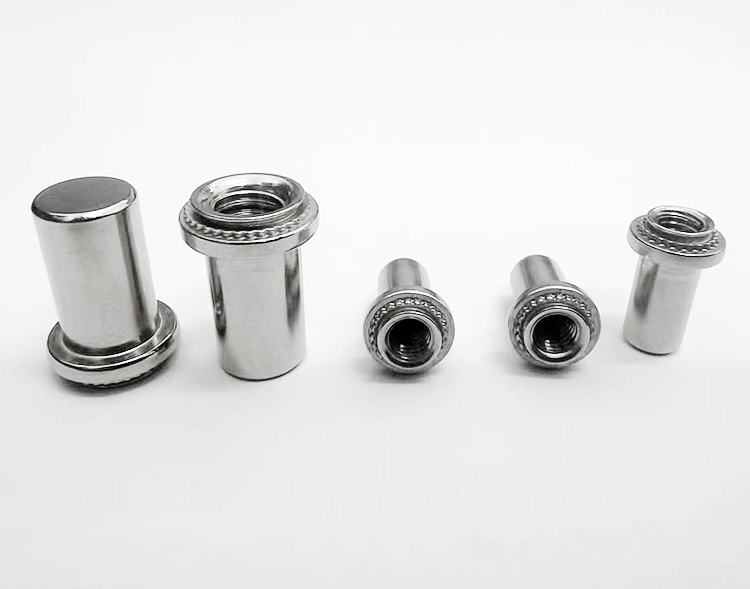 1.裝入(ru)圓孔(kong)內(nei),采用壓力鉚(liu)接(jie)(jie),能使其穩固的(de)鉚(liu)接(jie)(jie)在薄板(ban)之(zhi)上